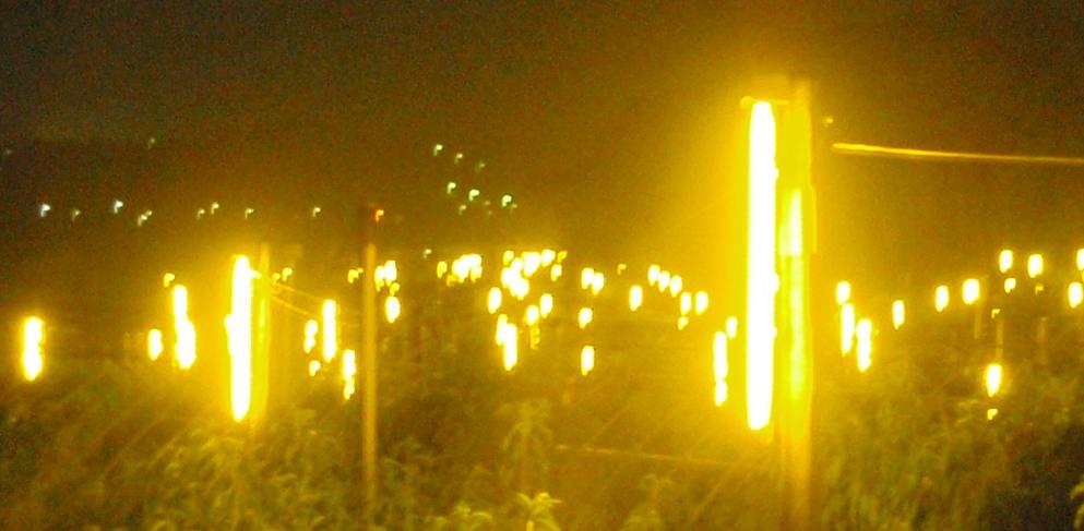 桃の木が植えてあるらしいです。そして、これは虫除けのライトらしいです。すごくきれいでした。写真を撮ってキャッキャ