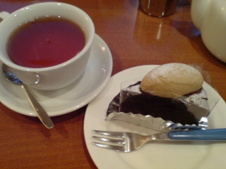 なんとなくケーキセット。ガトーショコラとアッサムティー。おねーさんは、アップルパイとコーヒー。おねーさんはコーヒー派で、私は紅茶派。。。。。