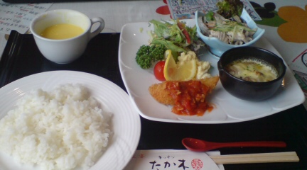 こんな定食でした。980円。もうおなかいっぱい過ぎる。量も多いって言う感じかもしれないけど、まぁ、フライ、グラタン、しゃぶしゃぶ???、かぼちゃのスープ、サラダって感じで、おいしいけど、ちょっとカロリーが高い???と言う感じで、おなかがいっぱいに。