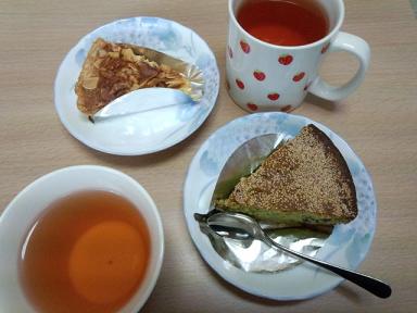 そこではケーキも売っていたので、買ってみましたw抹茶と小豆のケーキ、ナッツのタルト。