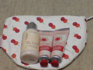 3本セットでしたが1本は母親にあげました。この3本セットにはポーチがついていました。チェリープリンセスはめっちゃ甘いにおいがしました。(リカの好みの甘い匂いです。が、妹には不評wwww)ちょっと軽めのクリームです。最初は物足りなく感じましたが、春めいてくるとこんな感じでいいかもって感じです。
