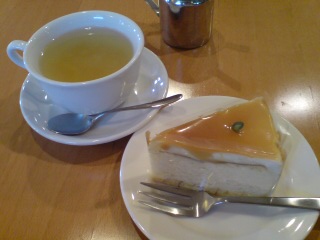 柚子茶とキャラメルチーズケーキ。キャラメルがのってるだけで、こんなおいしいかー?!って思ったwww(キャラメル大好きw)