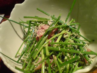 ねぎのサラダ。これ、おいしかったなー。ごま油の味がしたなー。韓国海苔みたいな味がしておいしかった。でも、後からねぎ臭かったwwww