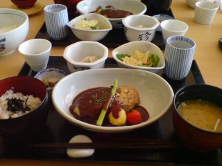 豆腐ハンバーグ膳。二人でこんなのを食べて、もう超満腹に。はぁ。お腹いっぱいだったな。