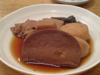 静岡おでんってリカのイメージでは、お味噌かなんかで食べるのかと思ったら、普通のおでん。黒はんぺんとか言ういわしのはんぺんに特徴があるそうです。普通においしいし。なんだろう?前から、私たちは魚の練り物を揚げた天ぷらを食べるので、それに味が似てるような???「どう?」って聞かれて、「おいしい。どっかで食べたことあるような味だなー」というと「そうよね!近くに海があるんだもんw」って言ってましたwwww