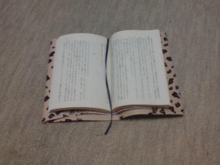 いつもなら、本屋さんがかけてくれたカバーをしているのですが、それだとみんな同じ感じで探しにくい。かといって、私の下手な字で、タイトルを書いておくのも。。。。って感じなので、わかりやすいようにブックカバーをかけておくことに!!!