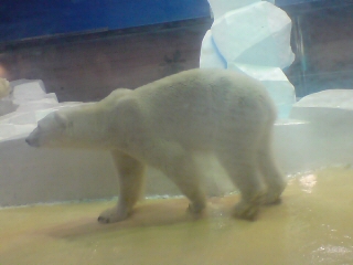 触れそうだったけど、やっぱり怖いので触らなかったよ。すごく近くでペンギンちゃんが顔を出してくれました。スイスイ泳いでたwまずは、白熊のいるところへ。