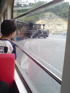 イルカのショーが終わるとぉぃたんはもう暑くて仕方なかったらしく「お茶でも飲みに行こう」と言い出しました。と言うわけで、お茶を飲みに行くことに。これがまた、ちょっと遠いところに行くことになりまして。