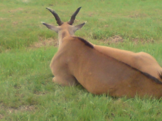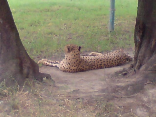 この鹿みたいな動物。実は、チーターと一緒に入っていますが、チーターは自分より大きな動物は襲わないそうです。だから、一緒にいても大丈夫なんだって。