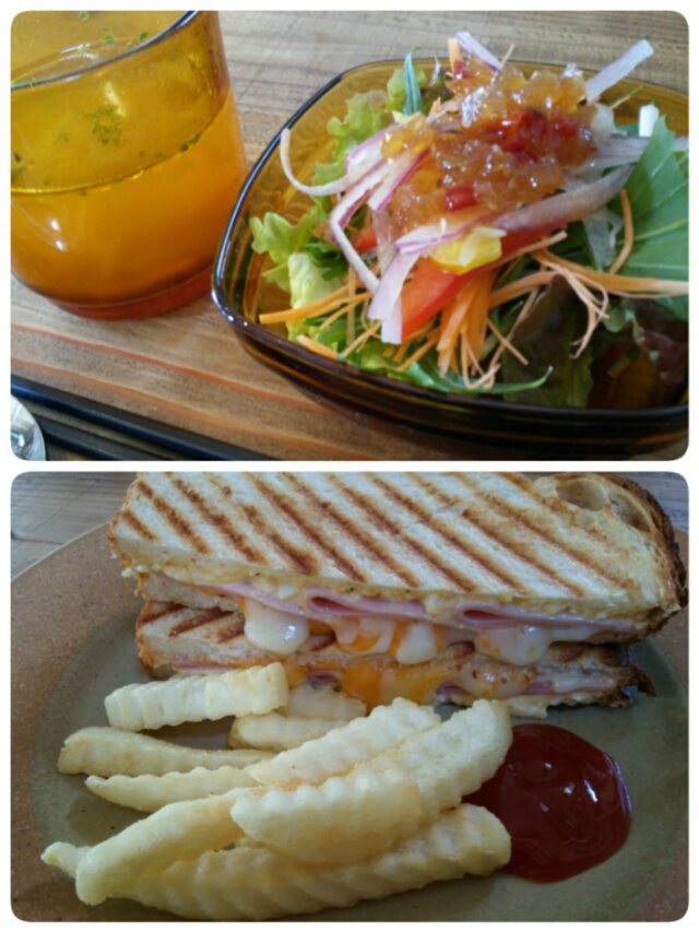 私はチーズハムサンド。でも、卵も入ってた!かなりのボリュームに、半分しか食べれなくて。彼に半分渡す(笑)