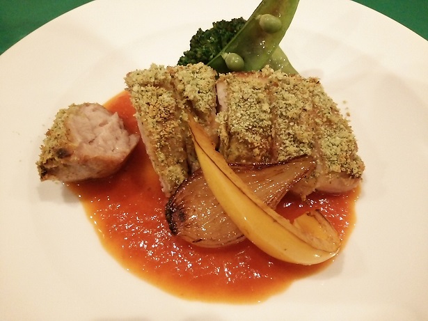 メイン料理。私は紀州梅鶏の香草焼きみたいなのを頼みました。