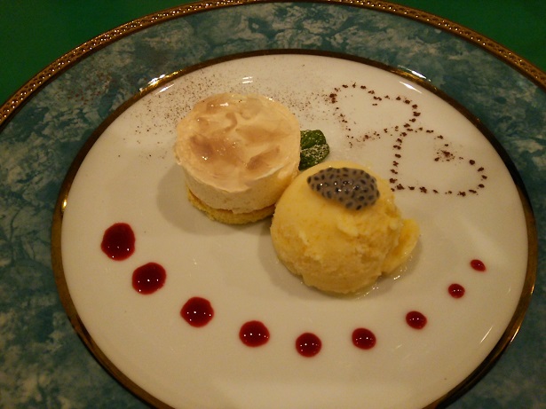 デザートは金柑のシャーベットと桜のムース。かわいいねなんて言いながら食べました。