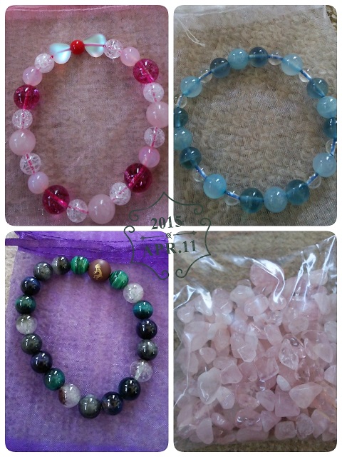 右下はさざれ石です。浄化するのにいるとかなので、みんなにこんなのをあげます。と言っても、一人一人違ってて、これはキティちゃんの人にあげる。同級生にはアメジスト、弟にはタイガーアイのさざれ石をあげることにしてます。