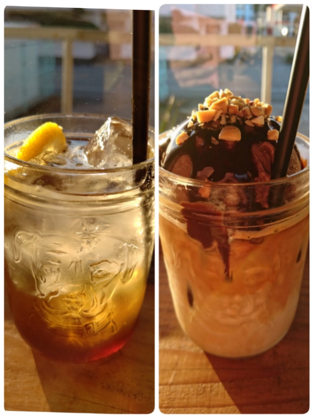 左のティーソーダは私。右のモカフロートは妹。