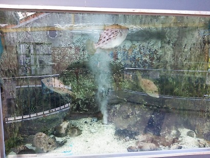 適当にテーブルのある席に座る。窓とか全然ありません。(笑)風が入ってきてさむいwwww