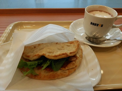 こんなものを食べました。なんだったかな。ミラノサンドC チキンと生ハムのアボカドソース ~ゆず胡椒風味~だったような気がする。。。。。(忘れた)