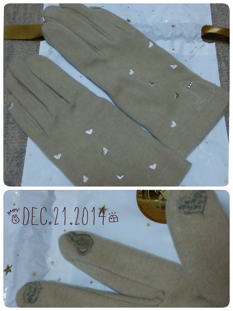 続いて小さな包みを開けたら、手袋!!!レベッカテイラーのものなので、猫ちゃんがついてました。指のところにもハートと猫ちゃん。手袋したままスマホの操作もできます。