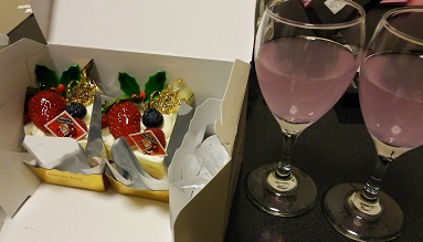 この日は二人で、ケーキを食べました。飲み物は、ピンクのペプシコーラwww「ドンペリってことにしようwww」とか言ってました。(笑)