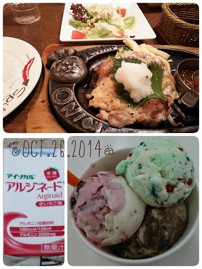 グリルチキンみたいなのを食べました。