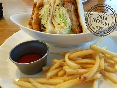 と言うわけで、チキンカツサンドとフライドポテトのセットを注文。なぜかそれぞれこれを注文。。。。。食べきれるわけない!!!