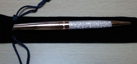 これがスワロフスキー社の2つ目。きれいなボールペン。これ見た時、「わー。きれー!!!」って思いました。色々字を書いてみたくなりました。(笑)