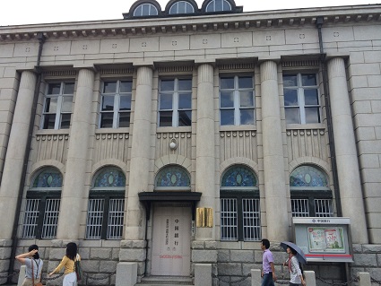 大正時代に建てられた銀行。今でも使われてます。ステンドグラスのところを見ると小判の絵とかあります。