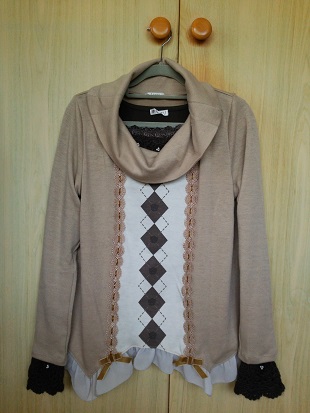 なんかかわいいな(いや、年齢的にかわいすぎるかもしれない)と思って購入。これで、3,000円以内だったように思います。キャミなんかは案外2,000円とかいいお値段だと思うんです。が、こういうお洋服に関してはすごく安い。妹はこれの色違いで黒を購入。黒の方が落ち着いてる。。。でも、なぜかいつもこういう風になるのです。