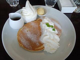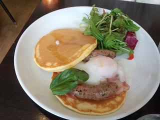 私が頼んだパンケーキ。量がだいぶ多いです。おなかいっぱいになったー。