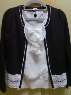 ノースリーブのニットに、シフォンの袖&シフォンで前を二重に・・・と言うやつです。