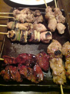 焼き鳥の串の盛り合わせ。肝があるー。リカは食べられない。。。。って言うと友達がたべてくれたwwww