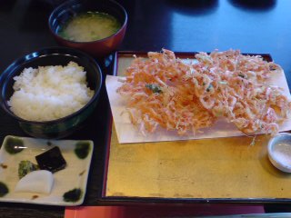 サクラ海老のかき揚げ。これがおいしいんだなー。