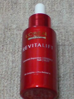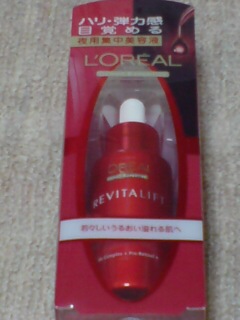 ロレアルパリのリバイタリフトナイトコンセントレートエッセンスと言うやつです。(名前、長い。)夜用の集中日溶液らしく、「夜に使ってくださいね!!!」だって。