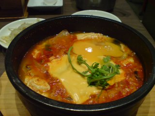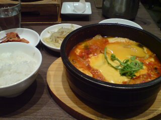 豚キムチズンドゥブというものに、ラーメンとチーズをトッピング。