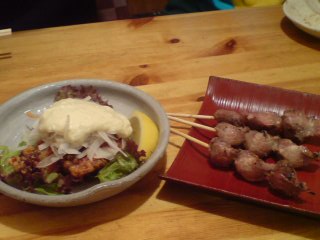 から揚げ南蛮と砂肝。砂肝は好き。かたいけど。