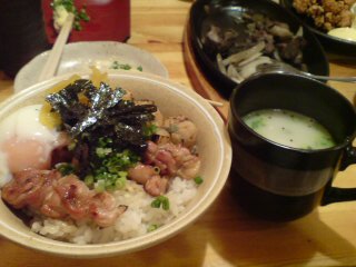 みんなが卵かけご飯を頼むと言うわけだけど、リカは生卵はちょっと・・・ってわけで、鶏丼を頼む。ネギマ、つくね・・・ってやたらと多すぎ!!!この時点でもうすでに、お腹がはじけてしまいそうなのに。横のスープはピカコさんが「コラーゲンたっぷりスープたのもう!!!」って言ったので、頼んでみた。