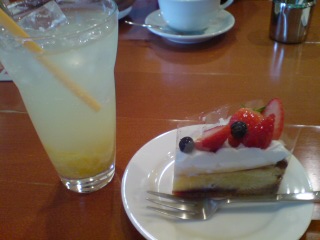 これは家族でお買い物に行ったときのおやつ画像。柚子ソーダとフルーツタルトです。