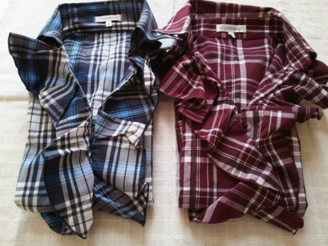 崩しダイヤ柄ジャージーシャツと一緒にイタリアンのピンクの色違いのブルーを買いました。