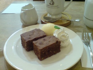 さて、静岡に戻って、友達を待ってる間に食べたおやつ。本当はね、お腹がいっぱいで食べたくはなかったんだけど・・・お友達を待ってるのも立ってたら疲れちゃったからお店に入ったの。でも、なんとなく紅茶だけっていうもの気がひけてしまったので、頼みました。ブラウニーです。お腹がすいてたらなーって思いながら。