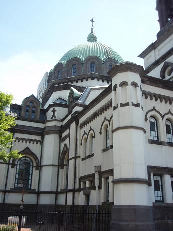ニコライ堂です。ロシア正教の教会です。(ロシア正教と書くのは正しくないと言う人もいるようですが、ここは一応、ロシアから来てる教会みたいなんで、それでもいいかなと思います。じゃなきゃ、イコンの勉強のために山下りんをペテルブルグに派遣したりしないでしょう・・・と勝手に思ってます。)
