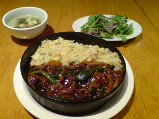 2日目のランチは、中華。って、これは友達のご飯。チャーハンにお肉の焼いたのがいっぱいかかってあるみたいな感じ。
