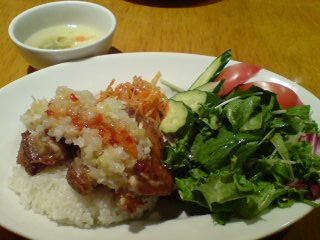 リカのはこっち。鶏肉のから揚げみたいなのがご飯にのっけてあって、サラダがついてるの。