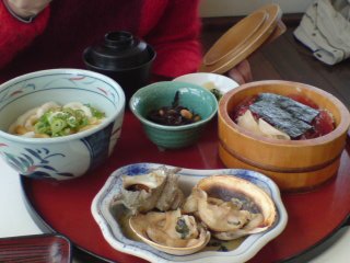 お友達はこれを頼みました。伊勢うどん、てこね寿司、サザエとかの焼いたの、茶碗蒸しも後からきたよ。