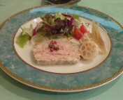 友達の前菜。パテドカンパーニュ。友達はこれは割りと好きらしいです。私は1回食べてみたけど、これは苦手だな。。。豚のお肉を固めたみたいな感じ????なんだか、ちょっと臭みがあるような気がしました。