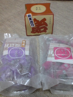 俵屋のじろあめ。水あめタイプのもの(上)は妹に取られてしまったので、食べてないです。。。ガーン。粒アメタイプのものは、左がスタンダードなもの。これが水あめと同じような味なのだな。右は梅味。正直、甘くないです。いや、甘いのは甘いんだけど、砂糖が入ってないせいか甘さが口に残らないんですねー。