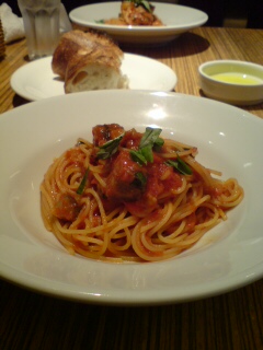 パスタは2種類のうちから選ぶことになっていたのですが、トマトソースを選択。(もう一つのがどんな感じなのかよくわからなかったので