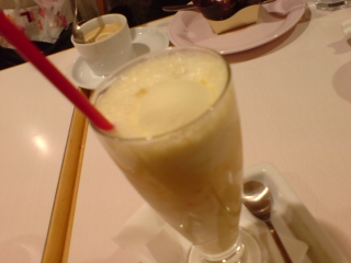 そしたら、お友達が「お茶でも飲もう」と。リカは最近、あまりご飯が食べられないので、(さっきの画像でたくさん取ってるくせに食べられないのです。すみません。残しました。。。。反省)おなかがすかないのです。でも、とりあえず入って、ミックスジュース。