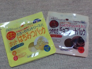 これはパックらしいです。全身用のやつねー。リカはチョコのを使いました。妹ははちみつ。チョコのパック。めちゃめちゃおいしそうなにおいがした。食べられないのが残念。。。。。おいしそーって思ってしまいました。危険です