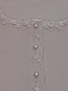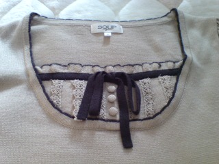 胸の辺りのアップ。そのままで着るといまいちなんだけど、上に茶色のカーディガンなんか羽織ると結構可愛かったりして。