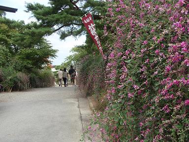 萩がさいてました。萩祭りののぼりが・・・・w