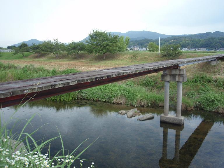 足守の古い町並みを見たくて行こうとした途中で見つけた橋。手すりとかなんにもない。これが、リカの興味をそそる。